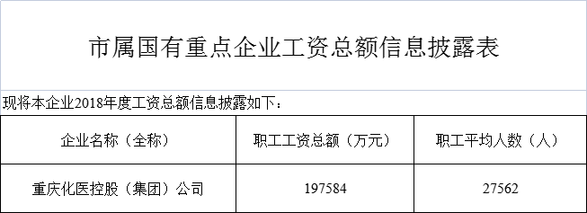 2018年化醫(yī)集團(tuán)工資總額披露表