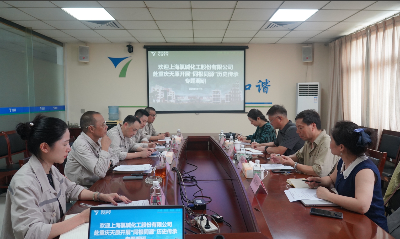 7月17日,上海氯堿化工股份有限公司黨委副書記、紀(jì)委書記、工會主席周建峰率有關(guān)部門人員到天原化工開展“同根同源”歷史傳承專題調(diào)研,旨在深化企業(yè)歷史淵源與紅色文化傳承交流