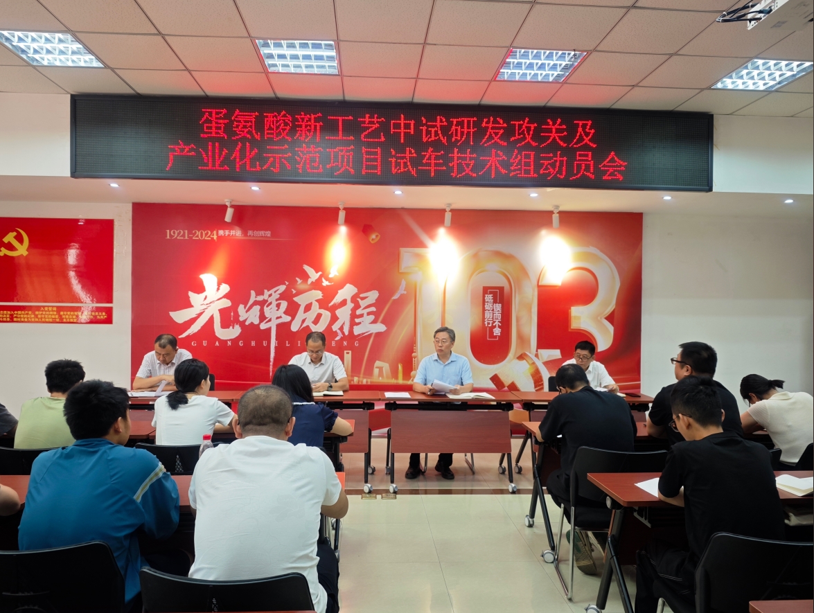 9月1日,化研院召開蛋氨酸新工藝中試研發(fā)攻關(guān)及產(chǎn)業(yè)化示范項目試車技術(shù)組動員會